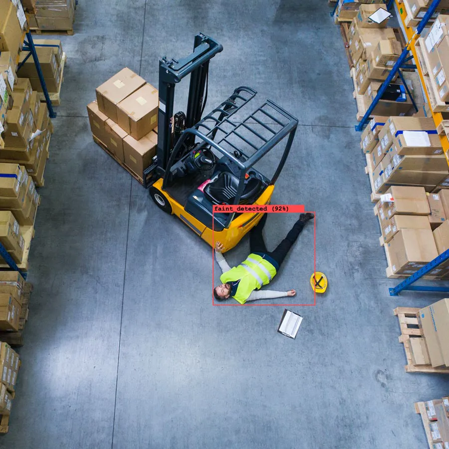 Faint and injury is very dangerous situations especially in the confusing areas like warehouses and industrial factories. Ability to recognize that something went wrong and trigger fast reaction by alerting responsible personnel has direct impact to potential aftermath or survival.